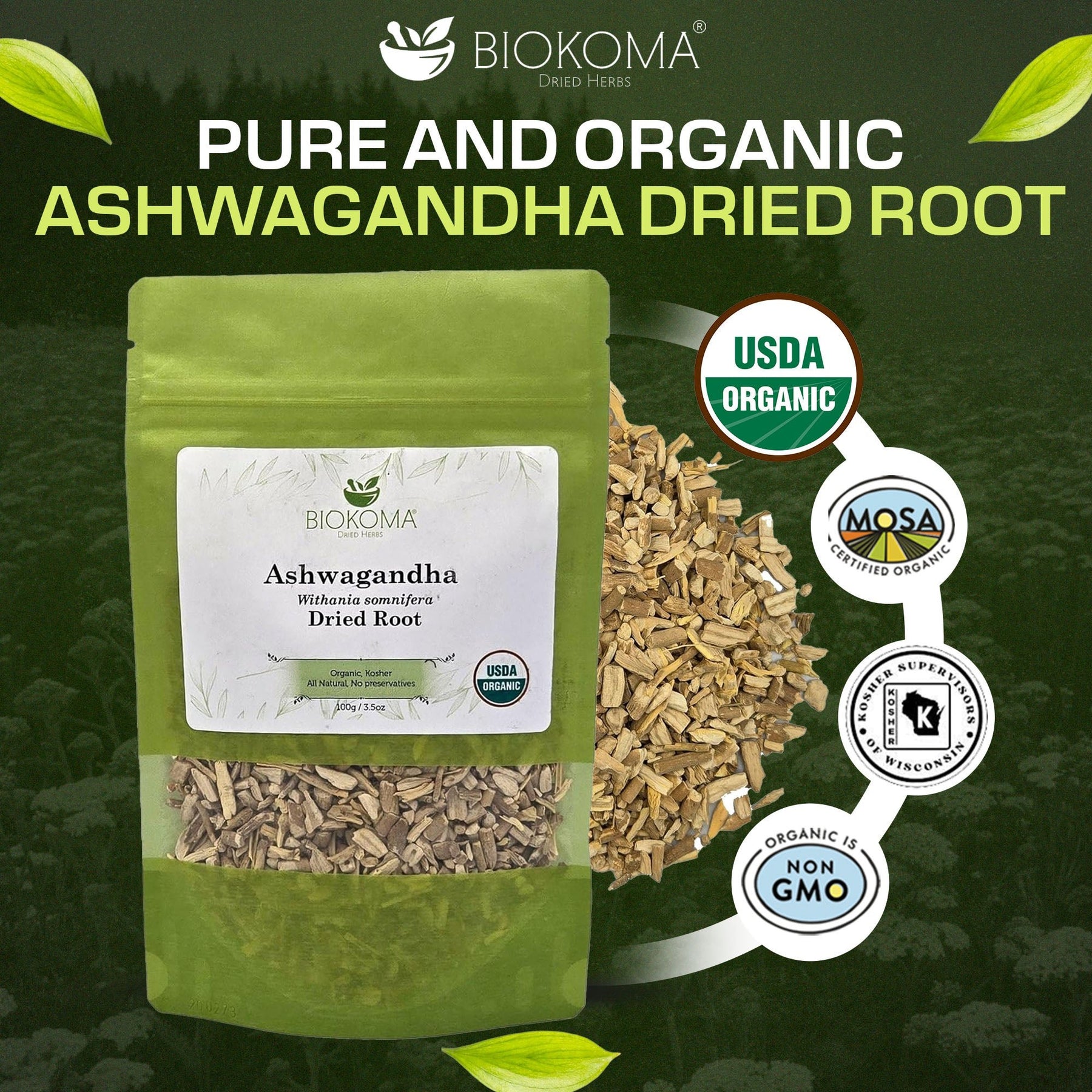 Ashwagandha (Withania somnifera) Organic Dried Root 100g 3.55oz