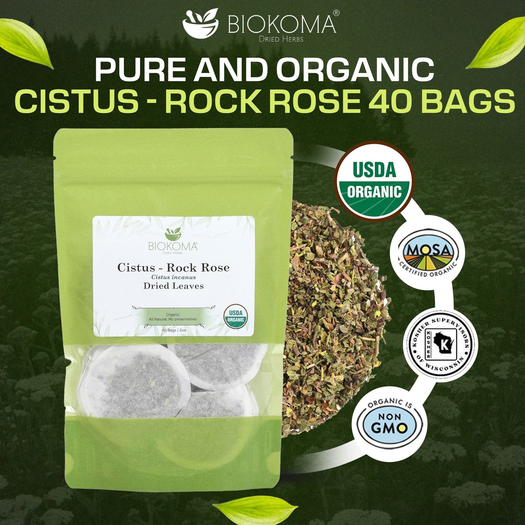 Cistus - Rock Rose (Cistus incanus) Organic Dried Leaves 40 Tea Bags 2oz